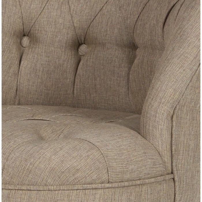 Açık Kahverengi Keten Kapitoneli Torna Siyah Ayaklı Tekerlekli Mini Berjer