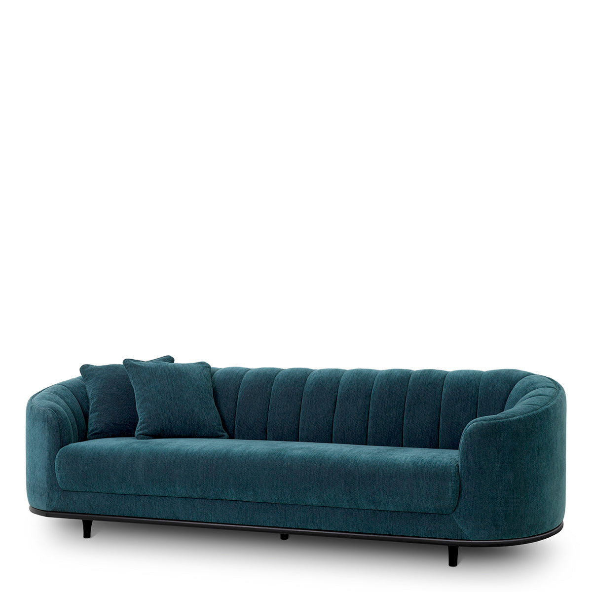 Agostino Sırtı Dilimli Detaylı Siyah Ahşap Ayaklı Yeşil Şönil Kumaşlı Kanepe Sofa