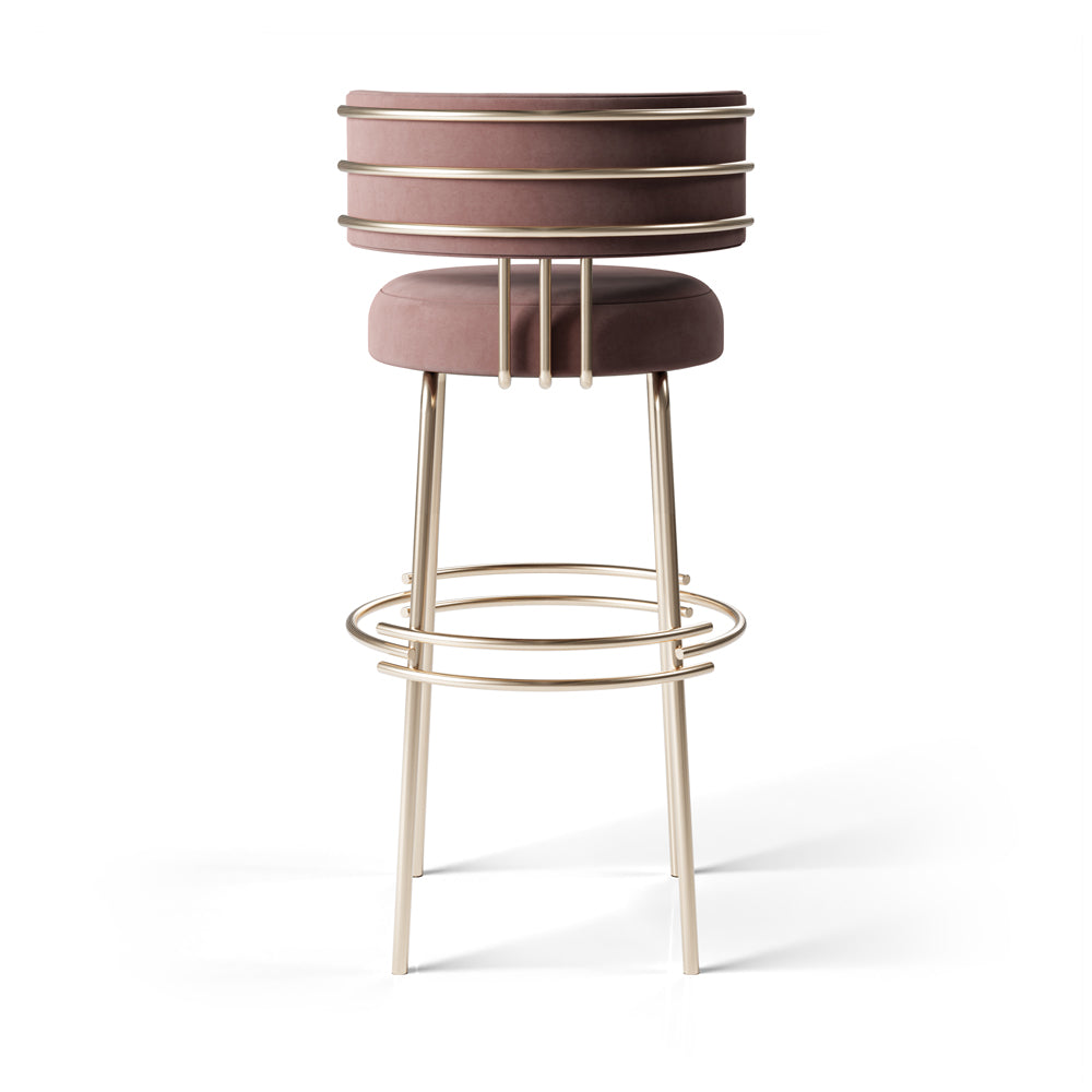 Algar somon rengi süet kumaşlı parlak pirinç metal ayaklı bar sandalyesi