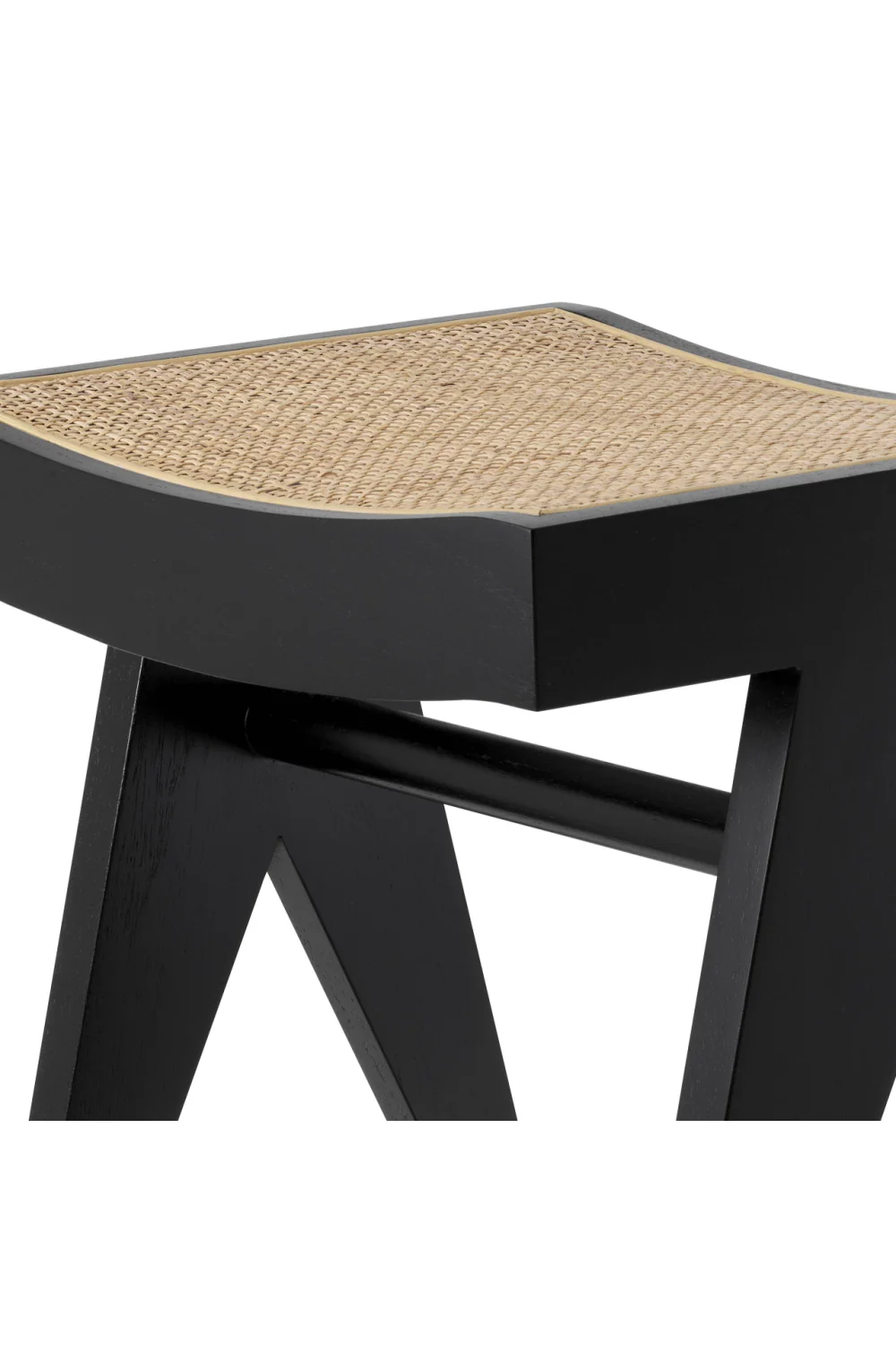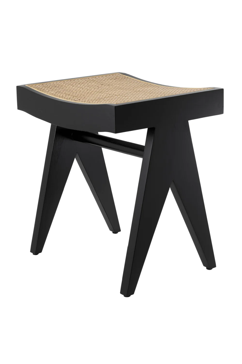 Arnaud hazeranlı ahşap çapraz ayaklı siyah hareli puf