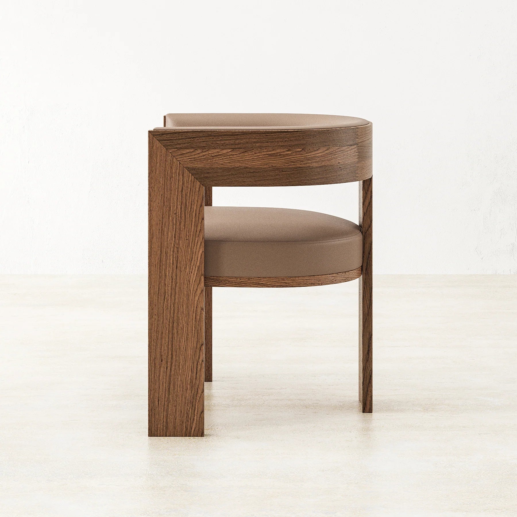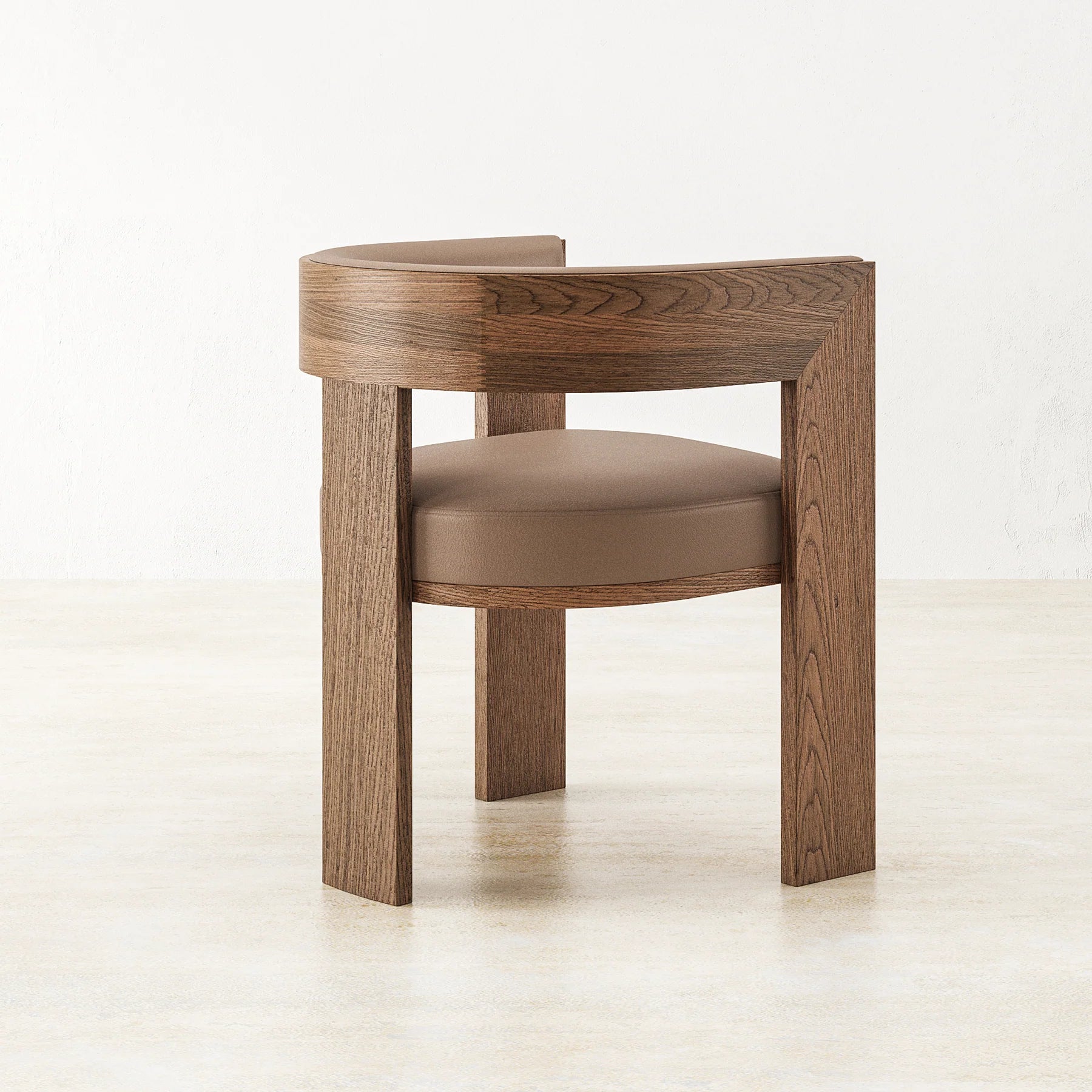 Aspen Kahverengi Suni Deri Döşemeli Masif Ahşap Ayaklı Ceviz Rengi Kollu Sandalye