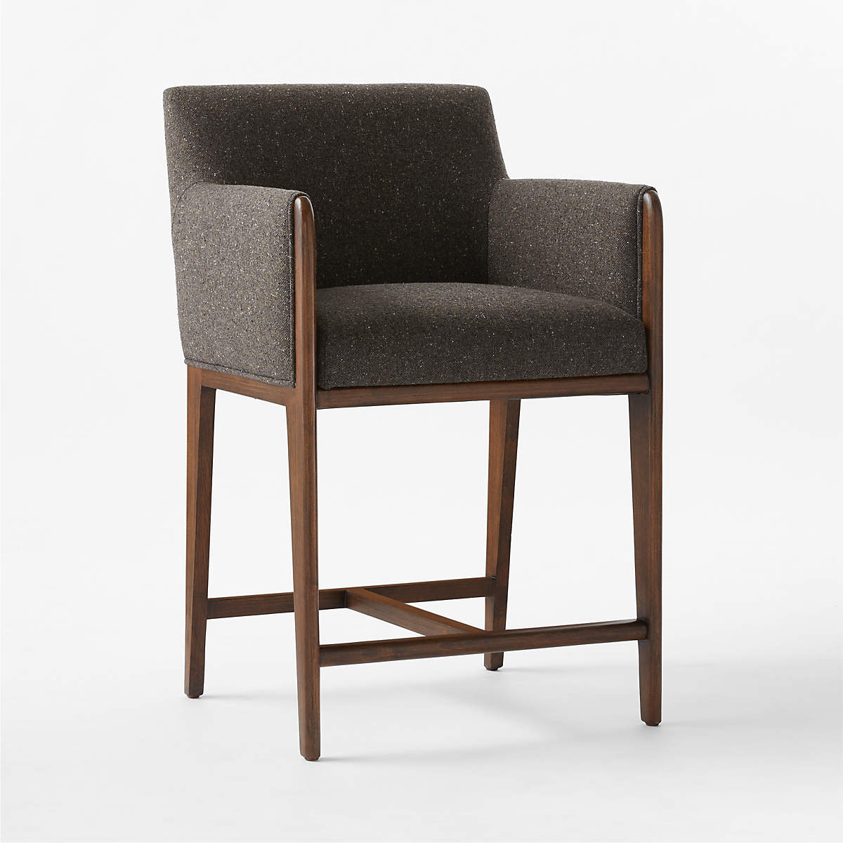 Casa Kahverengi Keten Kumaşlı Ahşap Ceviz Rengi Bar Sandalyesi
