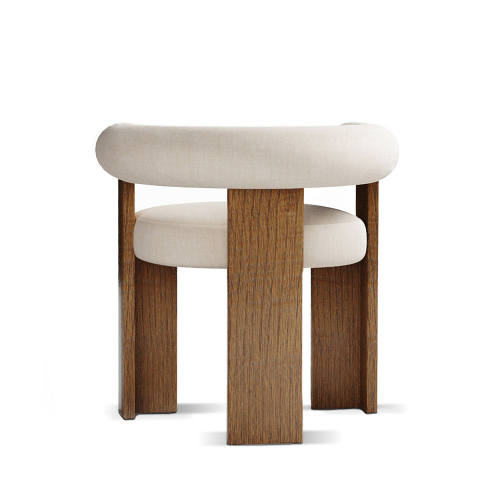 Cassette Beyaz Keten Kumaşlı Sırtı Balinli Kollu Ahşap Ceviz Rengi Masif Ayaklı Sandalye