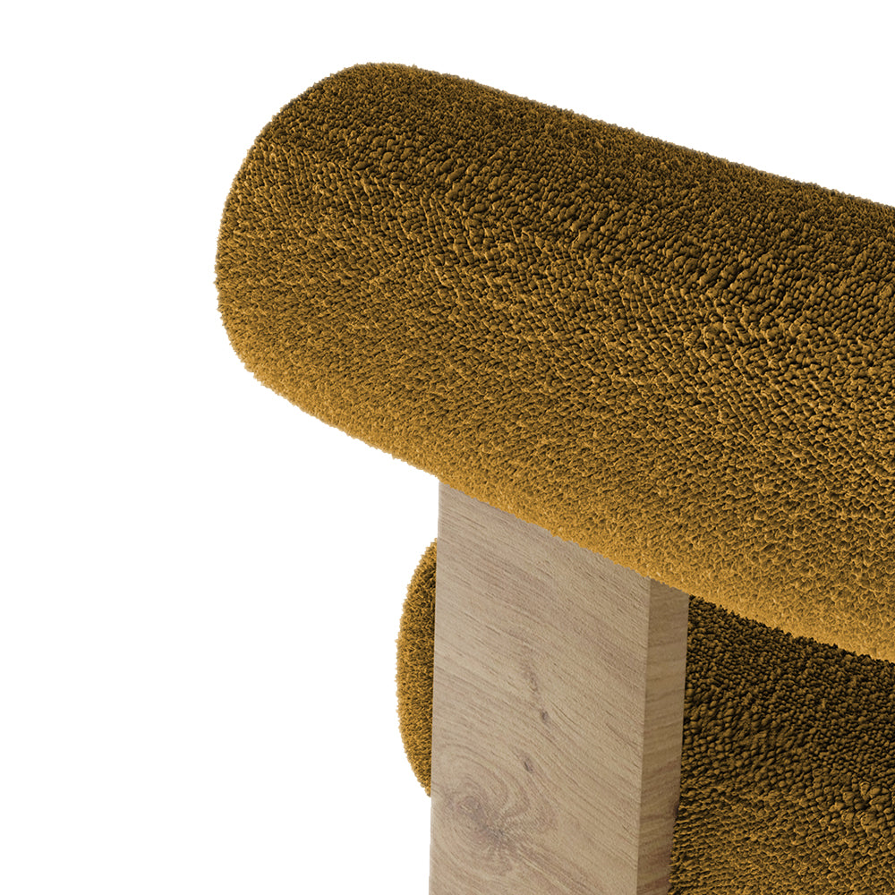 Cassette Hardal Teddy Bukle Kumaşlı Sırtı Balinli Kollu Ahşap Meşe Rengi Masif Ayaklı Sandalye