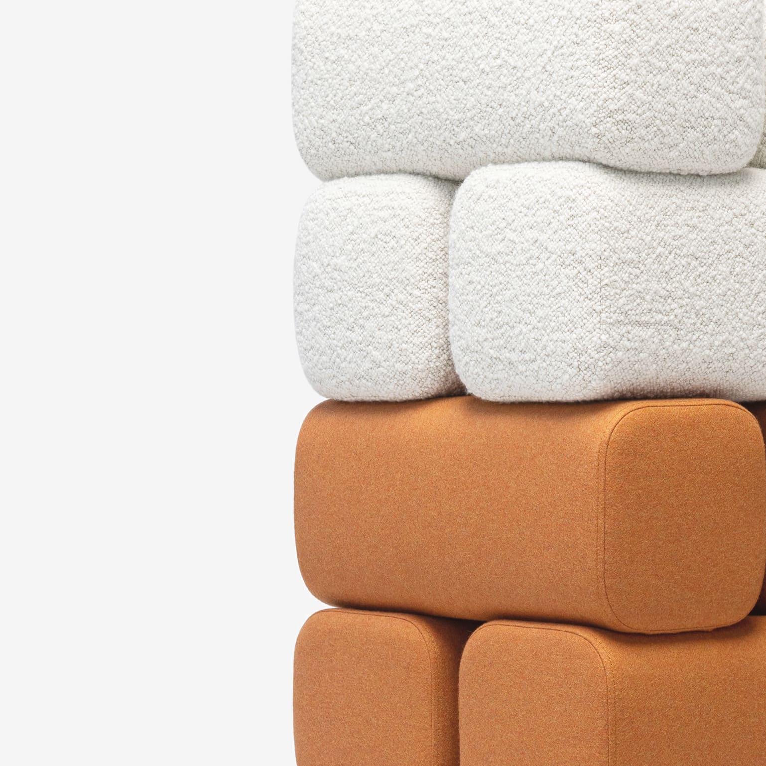 Drov beyaz teddy bukle kumaşlı kare lego puf