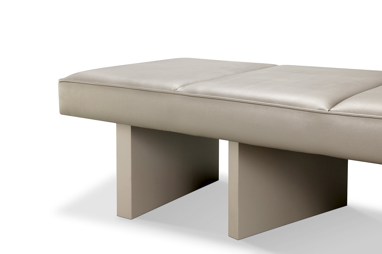 Edith Vizon Rengi Suni Deri Dilimli Detaylı Vizon Rengi Ahşap Ayaklı Bench
