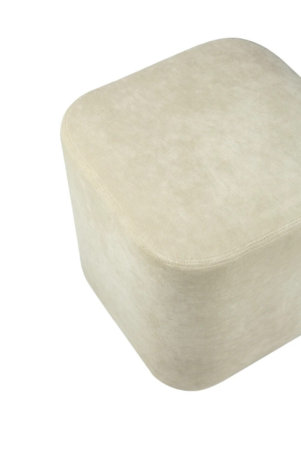Ethnicraft krem rengi süet kumaşlı radyüslü kare puf