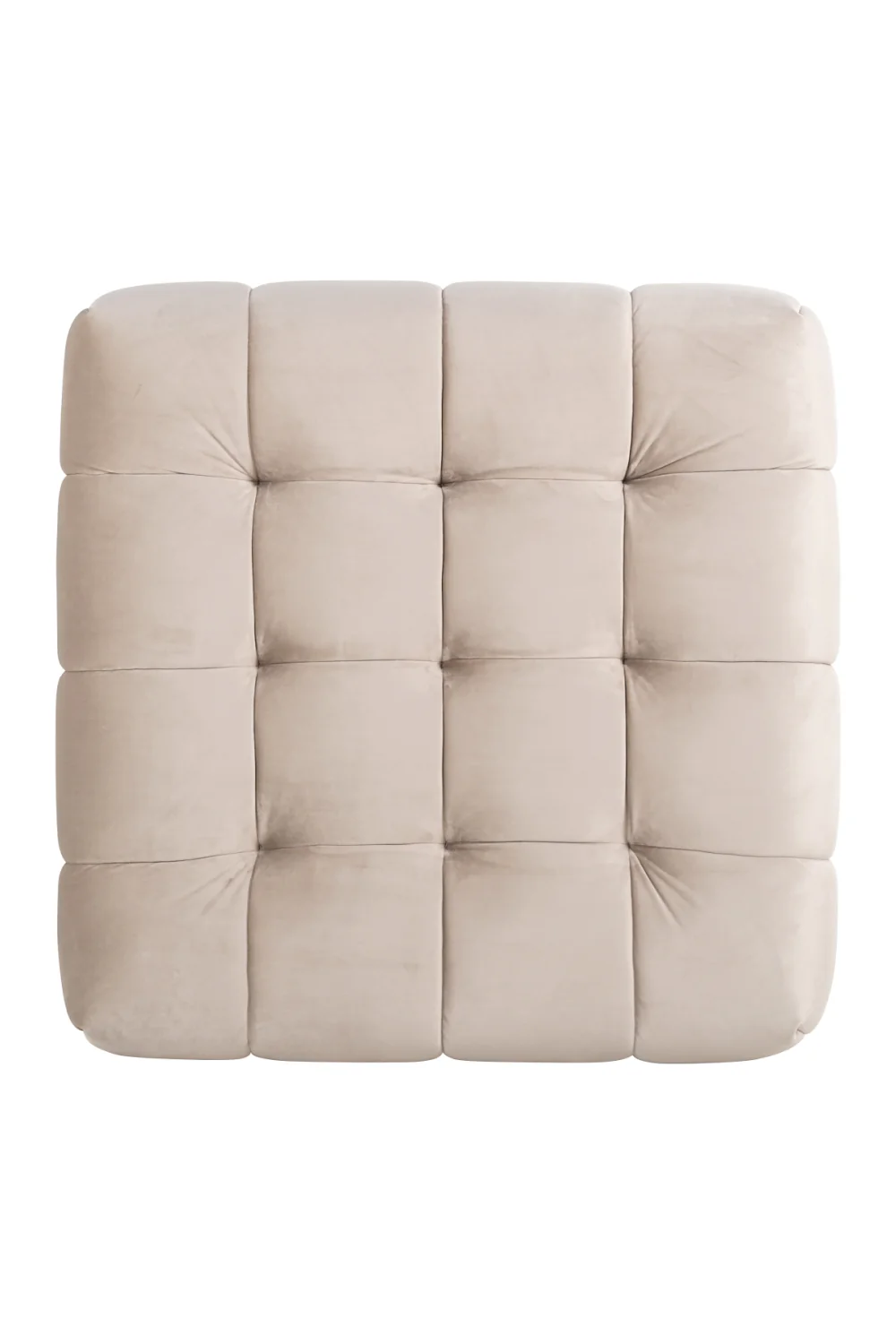 Huxley vizon rengi kadife kumaşlı kapitoneli gold kaplama konik metal ayaklı kare puf