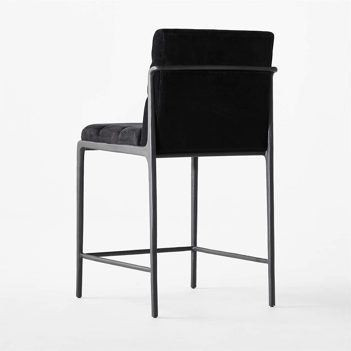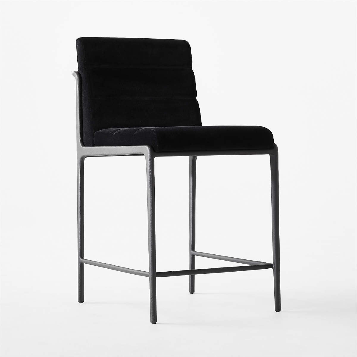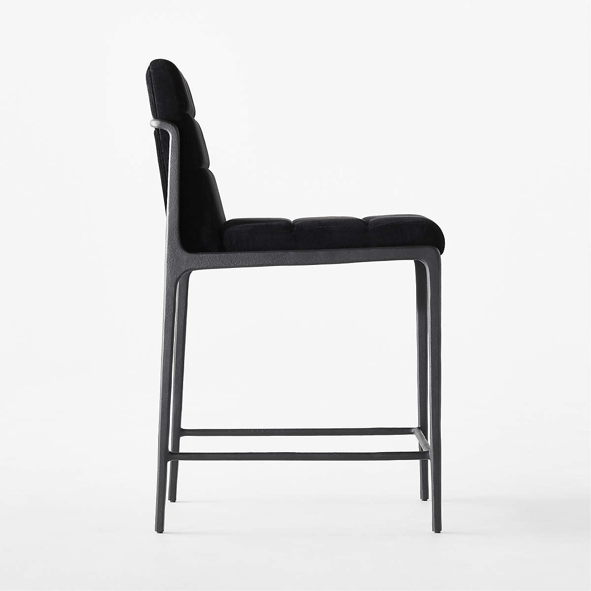 Nephi siyah kadife kumaşlı dilim dikiş detaylı siyah metal ayaklı bar sandalyesi