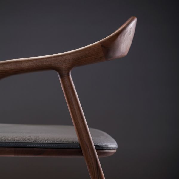 Neva Siyah Suni Deri Ahşap Ceviz Rengi Kollu Sandalye