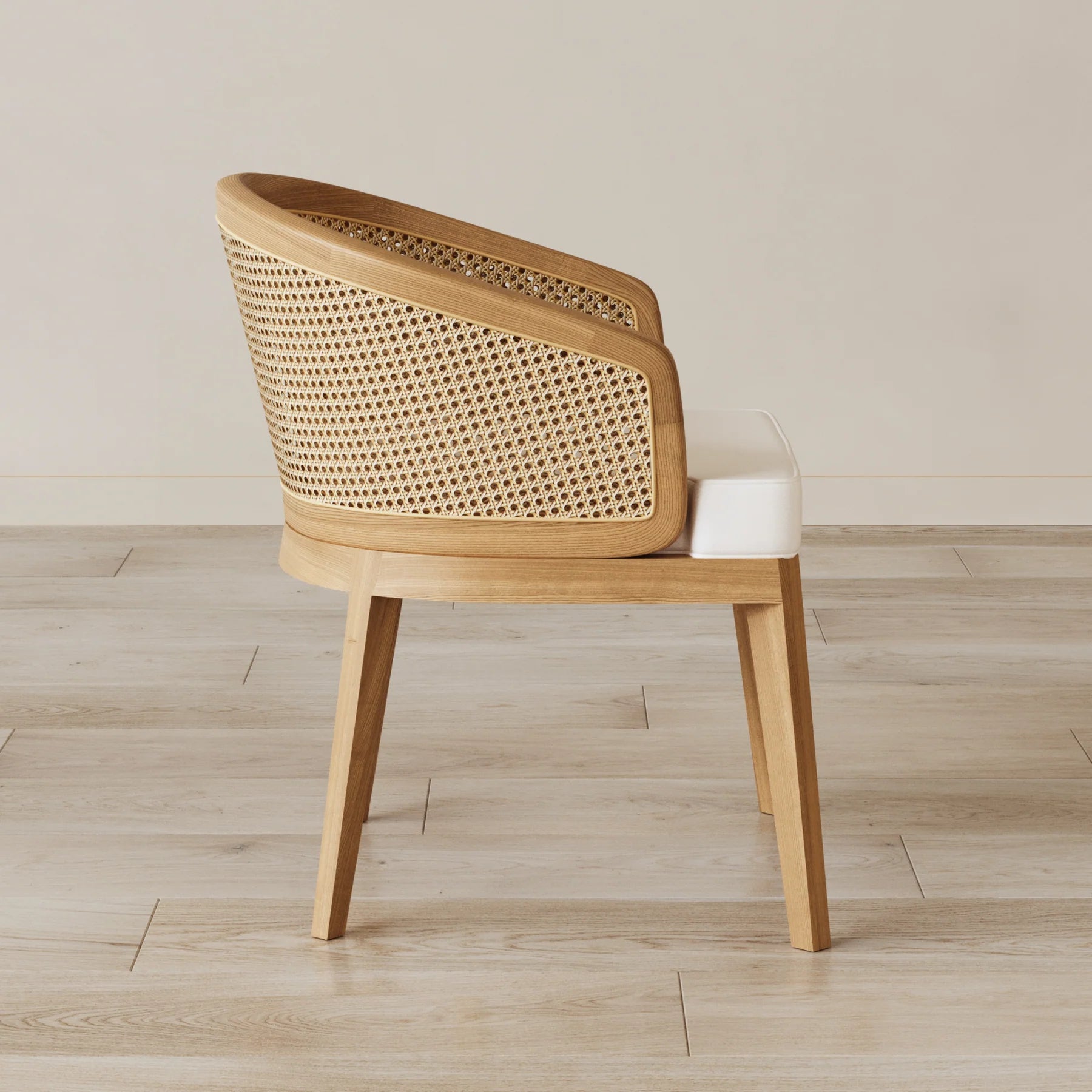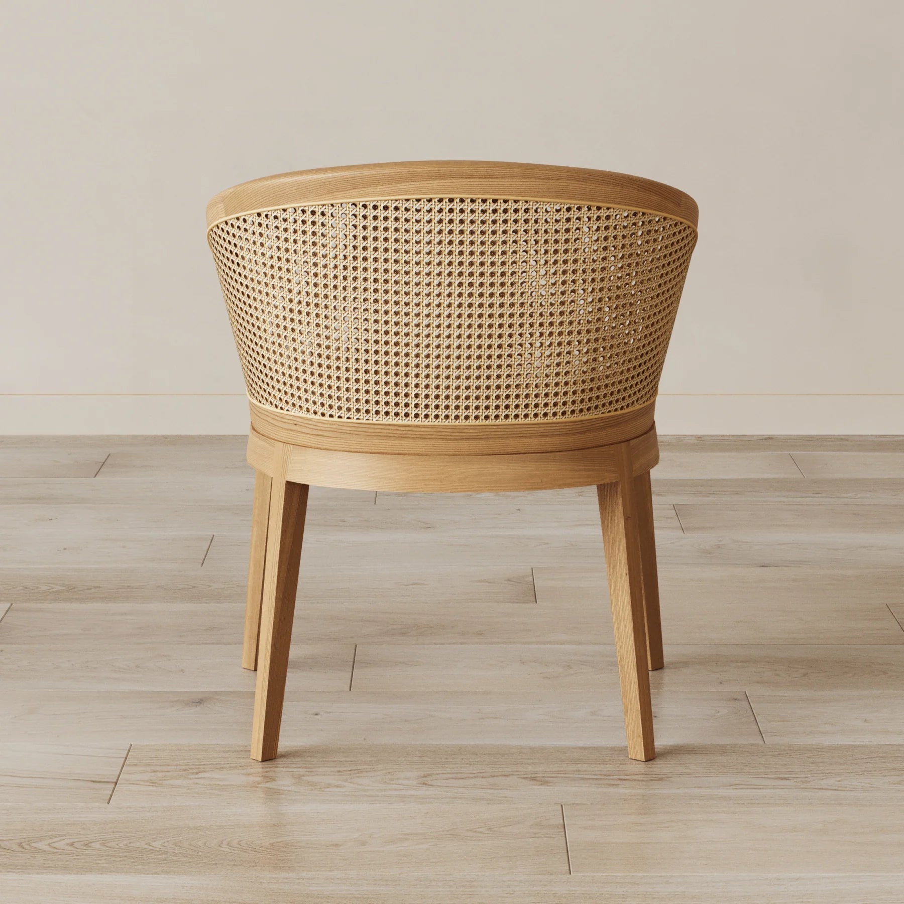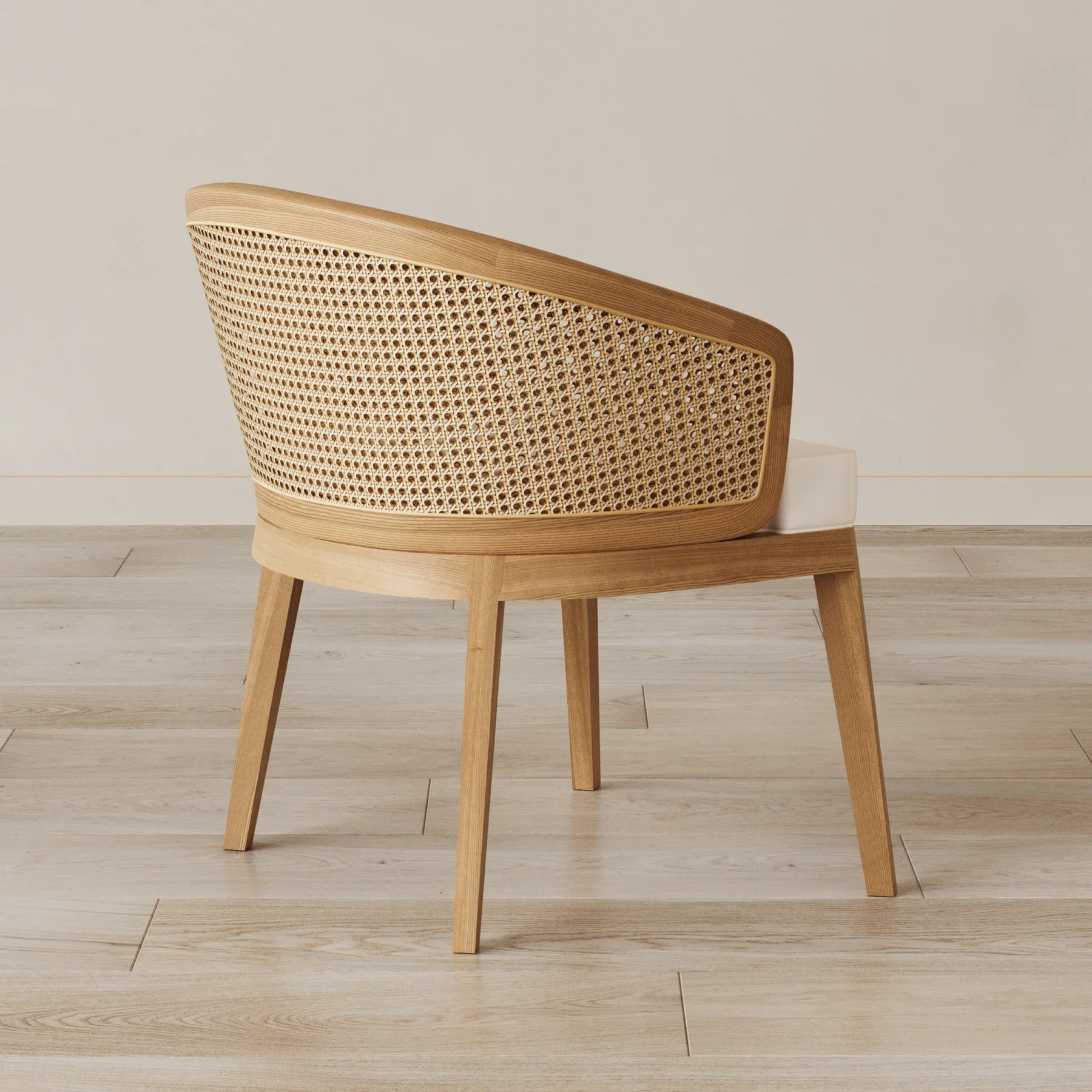 Paxton Beyaz Süet Kumaşlı Ahşap Natural Cilalı Hazeranlı Sandalye