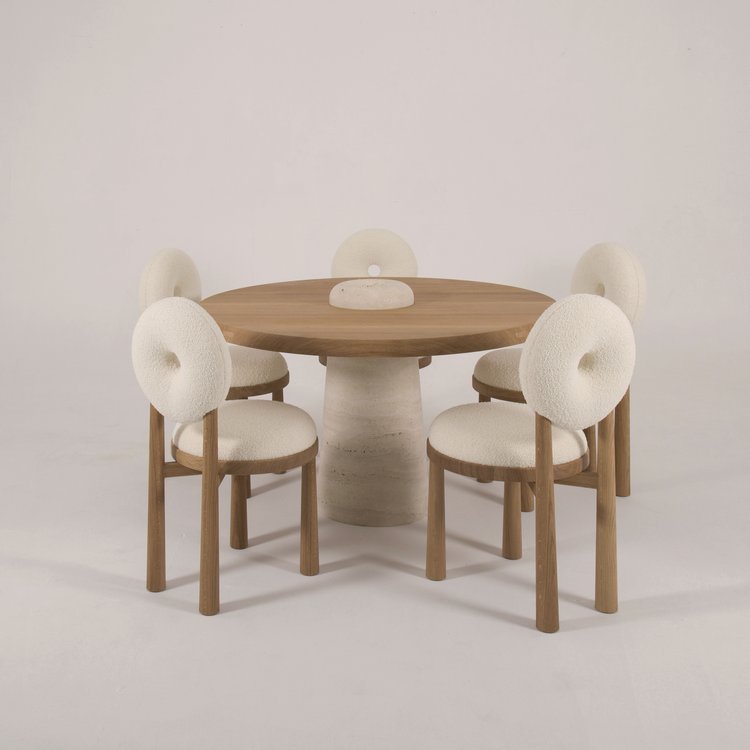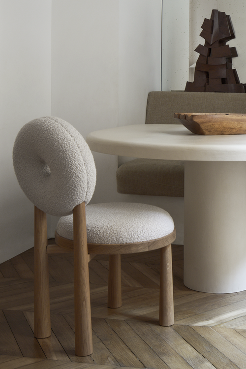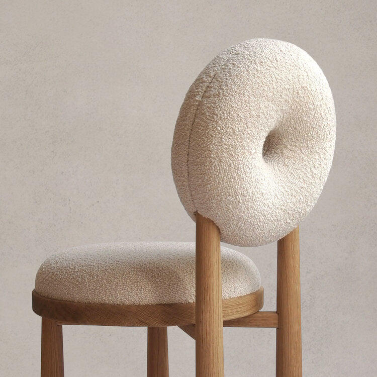 Polo Beyaz Teddy Bukle Kumaşlı Ahşap Natural Cilalı Masif Ayaklı Bohem Sandalye